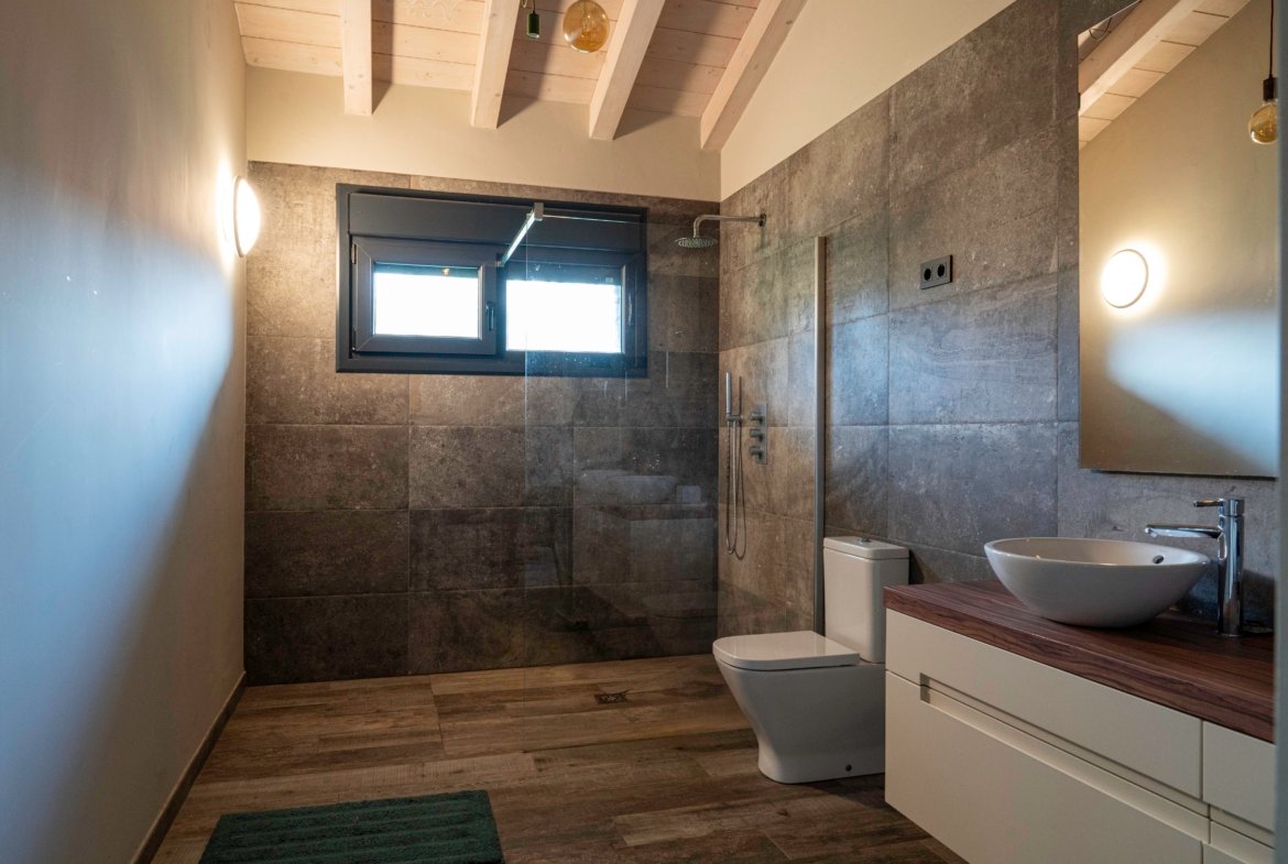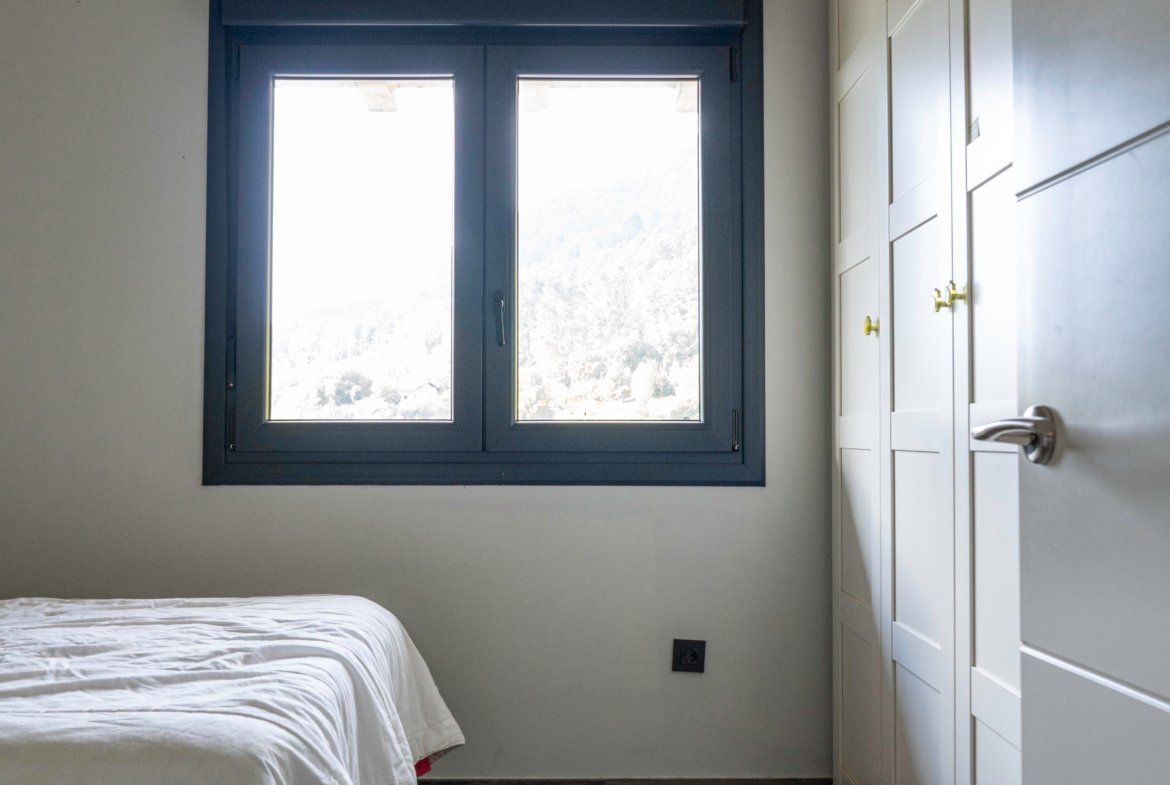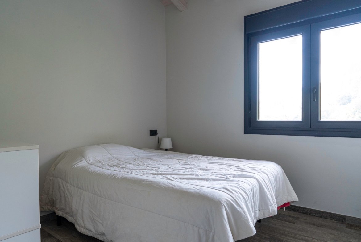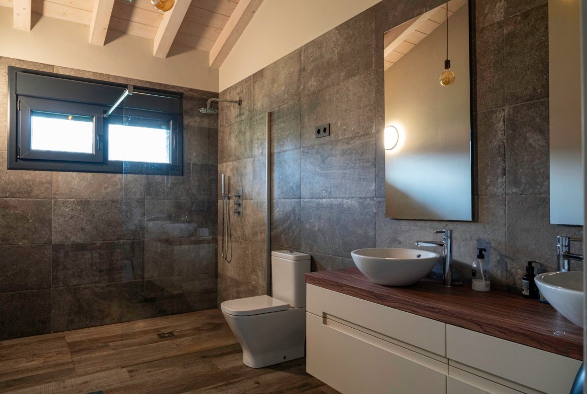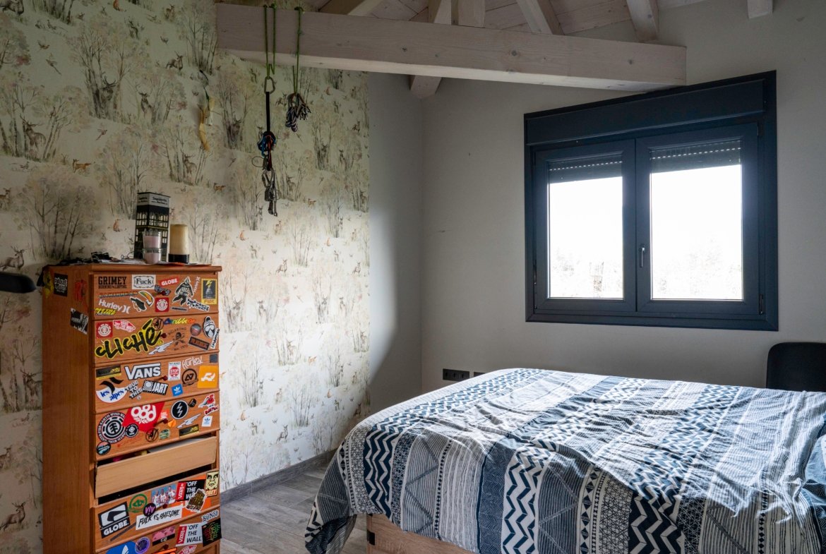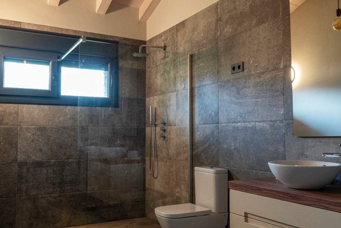 Con una planta principal de 205 metros cuadrados, la vivienda destaca por su amplitud y su diseño contemporáneo, donde la luz natural es protagonista. Dispone de cuatro habitaciones y un espectacular espacio abierto que integra la cocina con isla, el comedor y el salón, creando un ambiente cálido y social que invita a compartir momentos. Desde sus amplios ventanales se disfrutan unas vistas totalmente despejadas al paisaje verde que define el entorno de Dima.