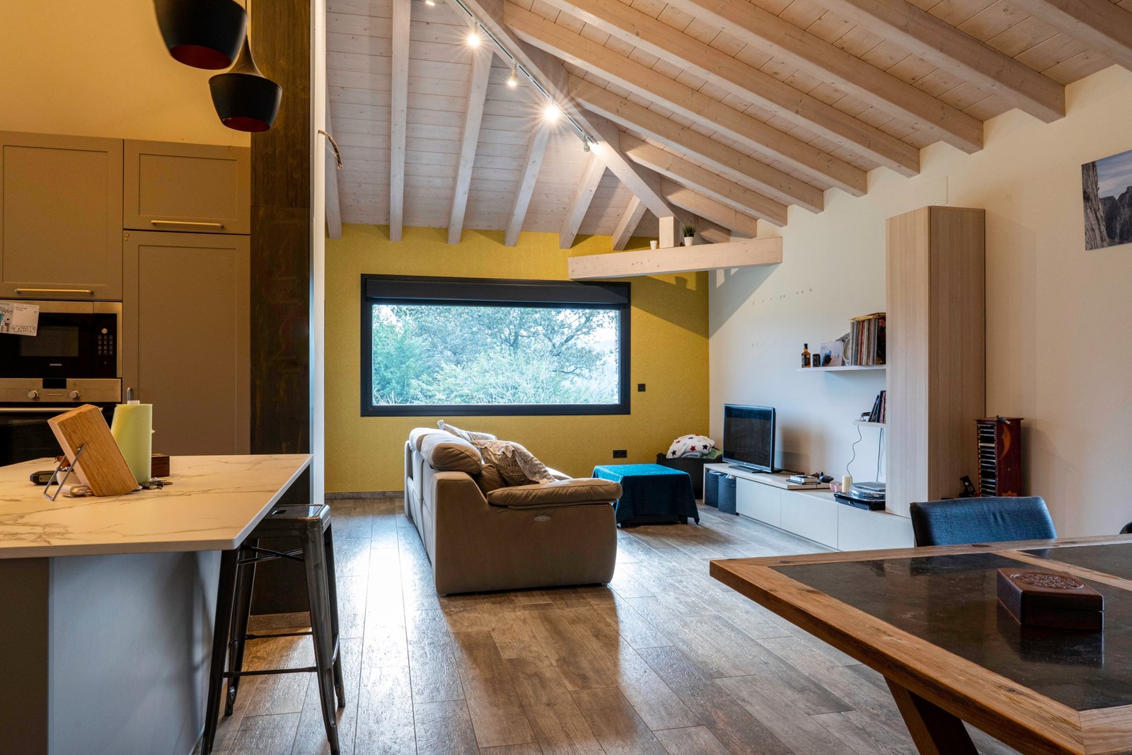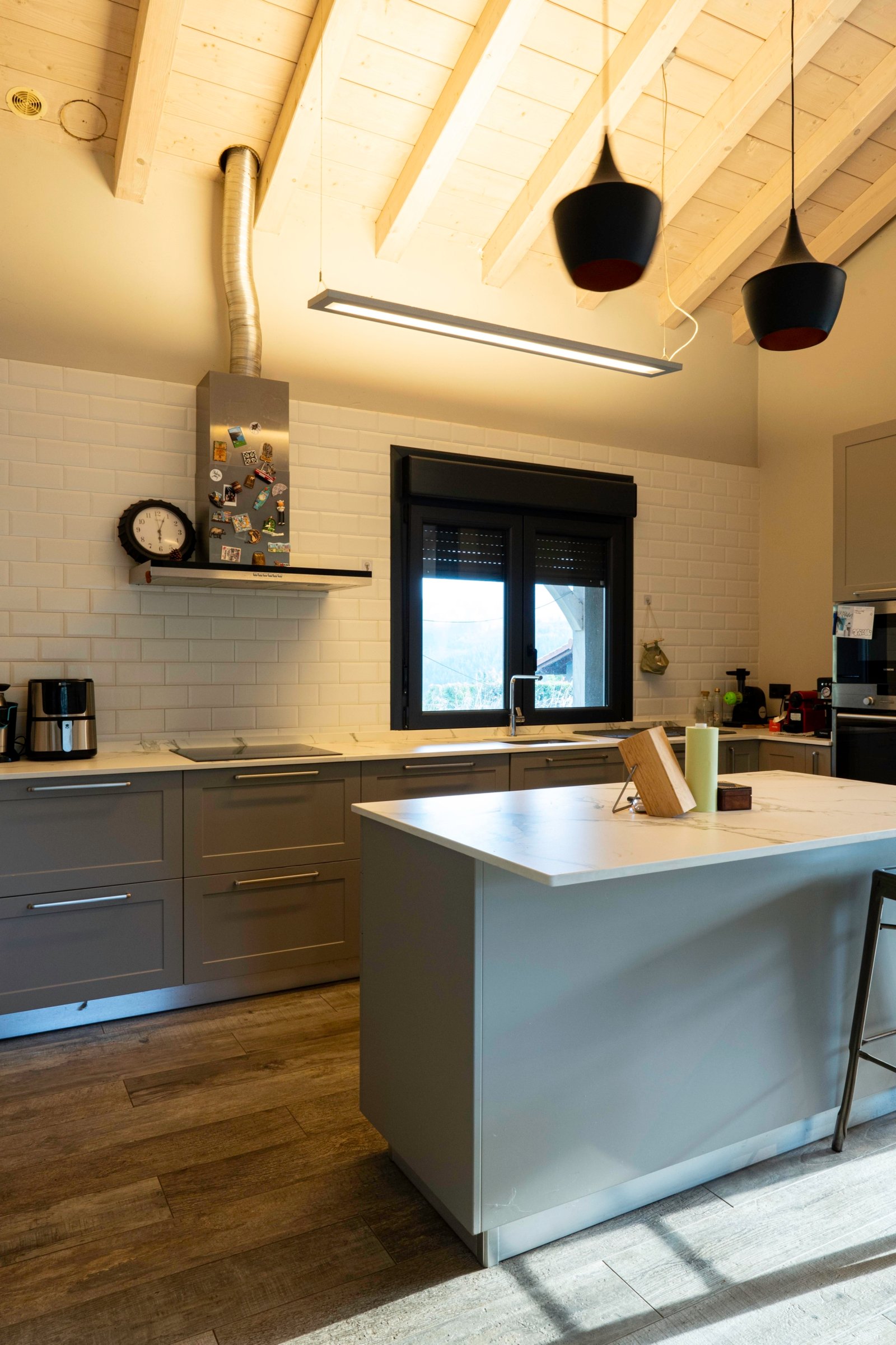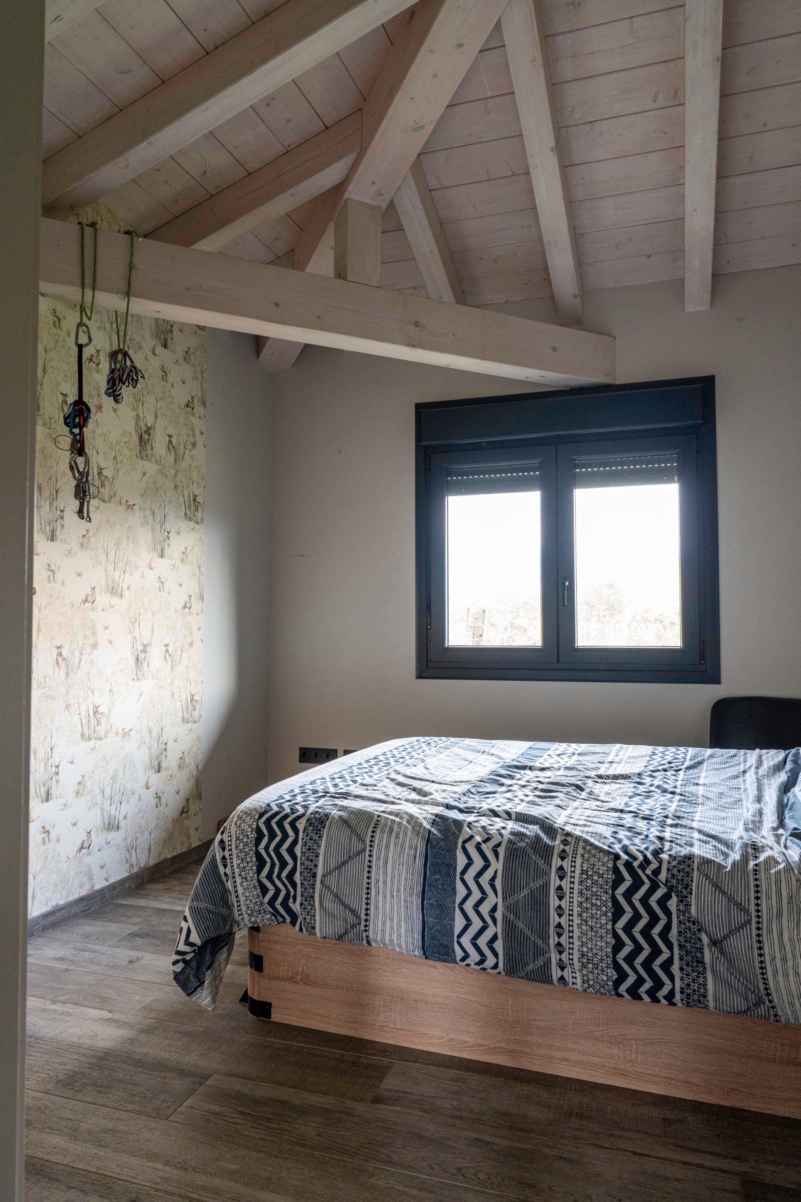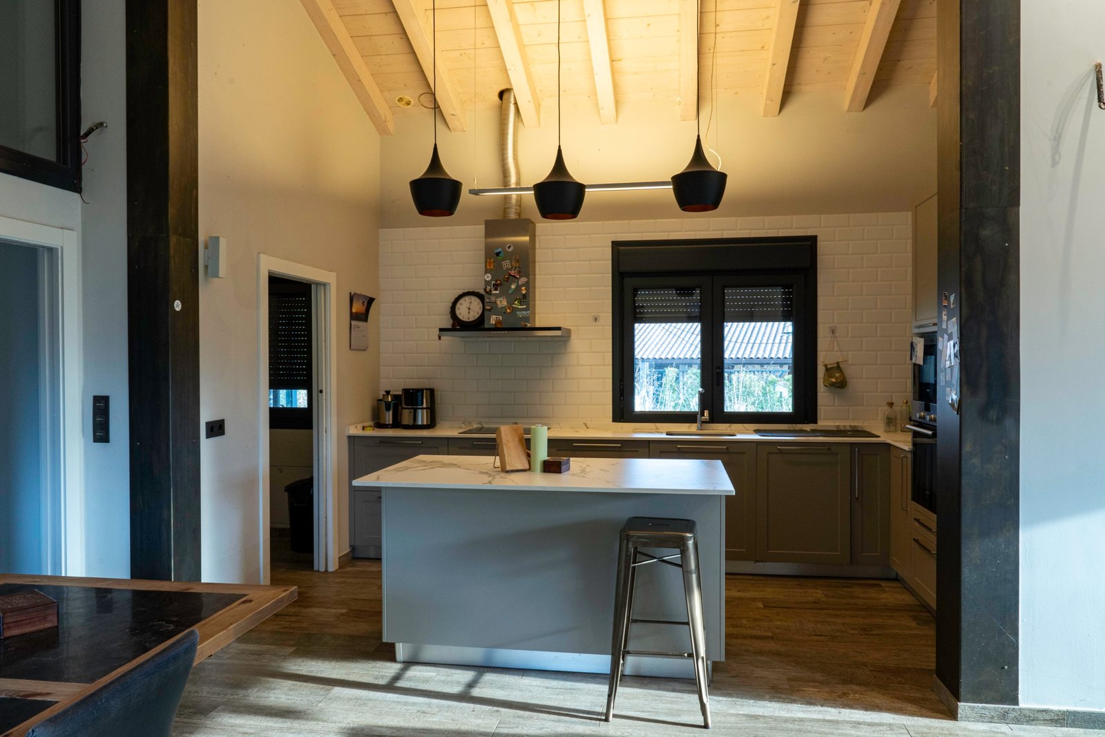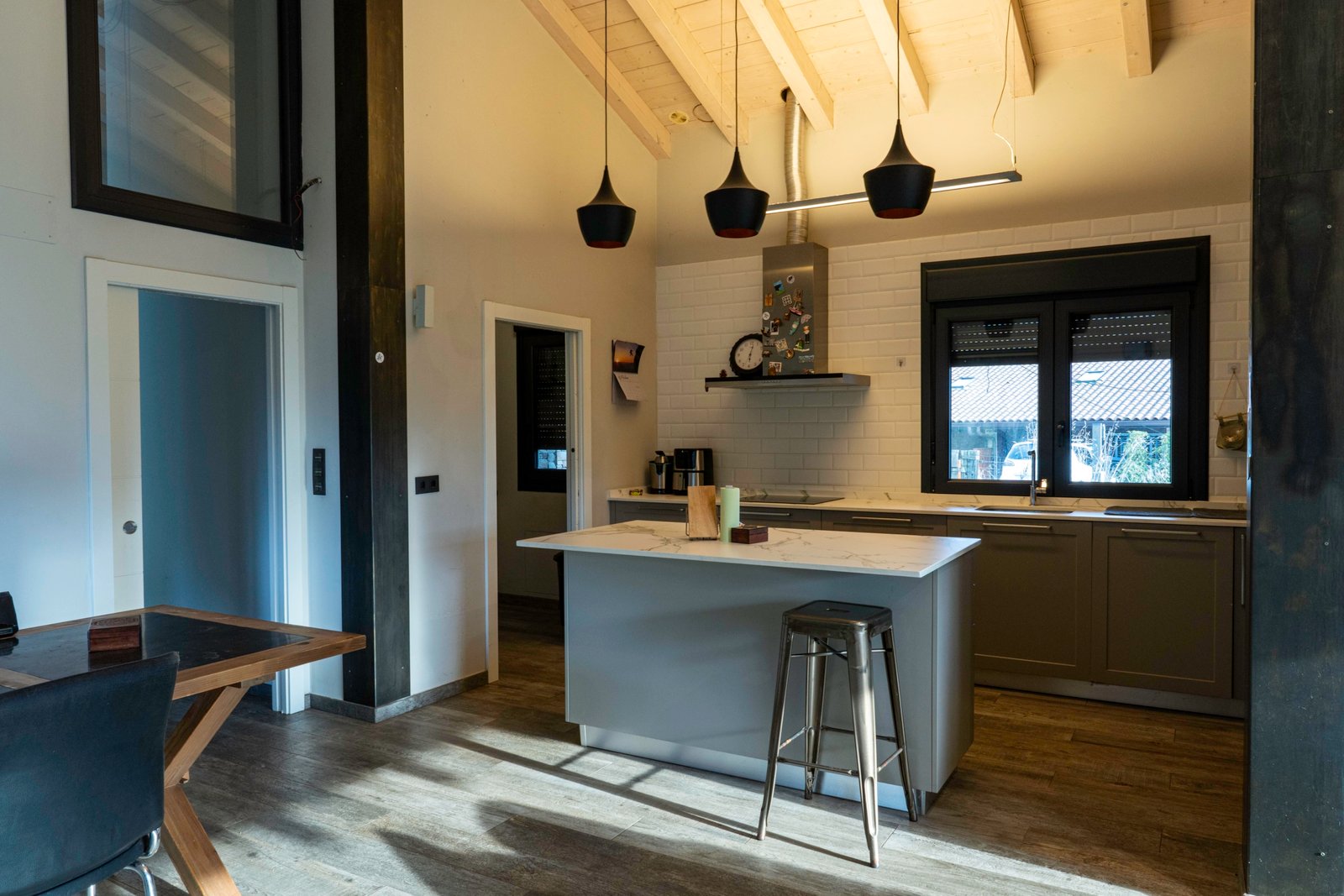 Con una planta principal de 205 metros cuadrados, la vivienda destaca por su amplitud y su diseño contemporáneo, donde la luz natural es protagonista. Dispone de cuatro habitaciones y un espectacular espacio abierto que integra la cocina con isla, el comedor y el salón, creando un ambiente cálido y social que invita a compartir momentos. Desde sus amplios ventanales se disfrutan unas vistas totalmente despejadas al paisaje verde que define el entorno de Dima.