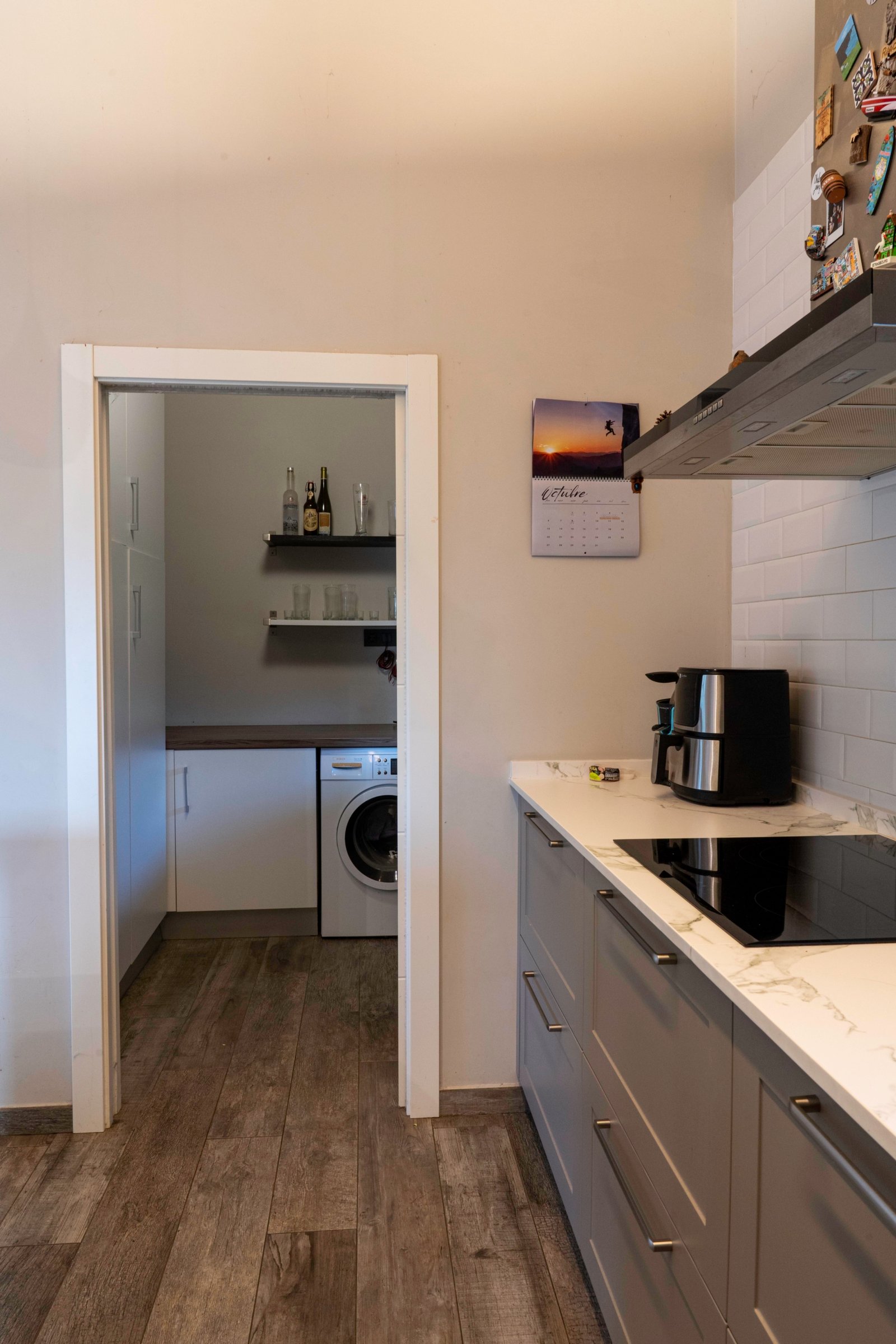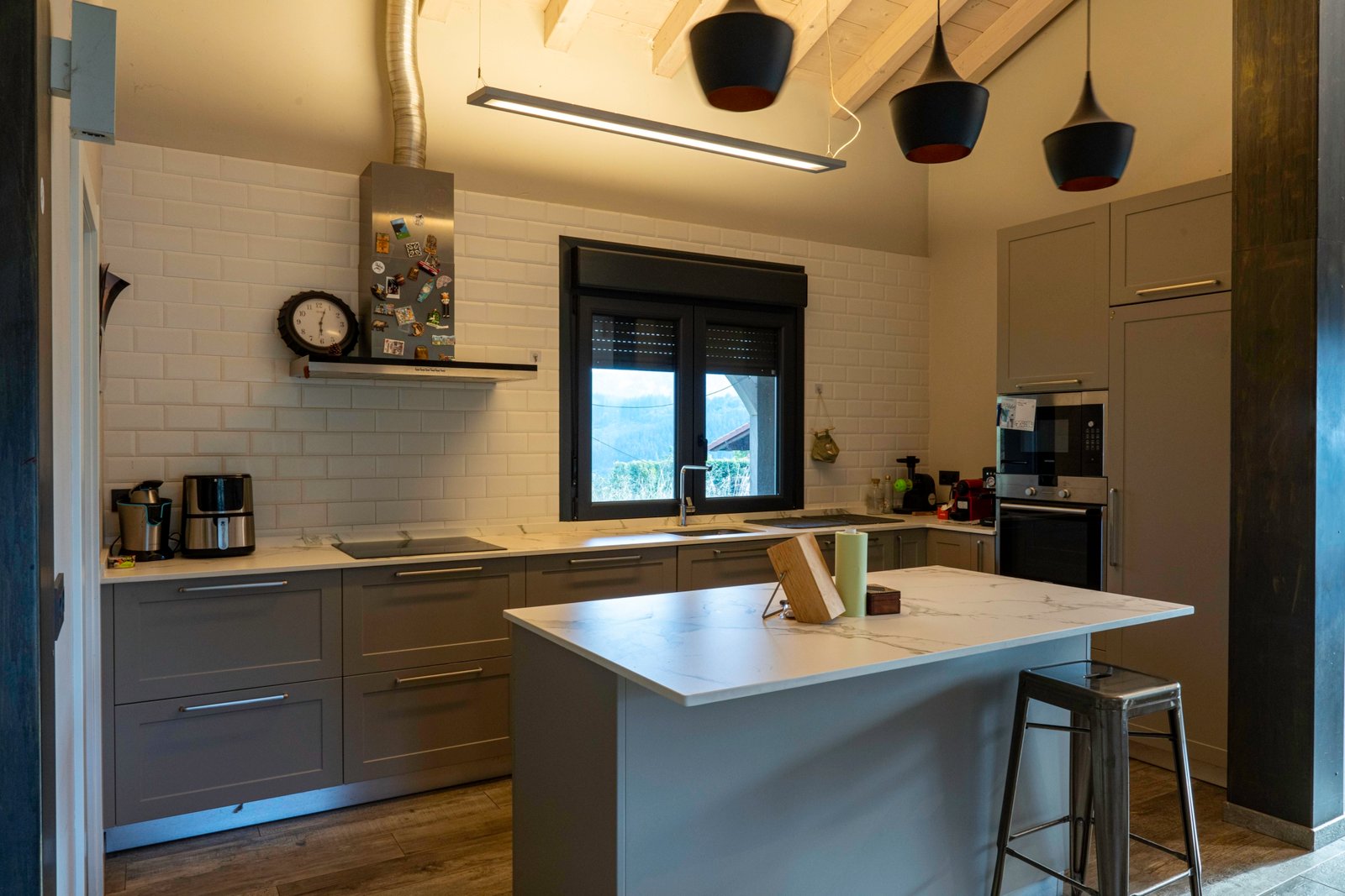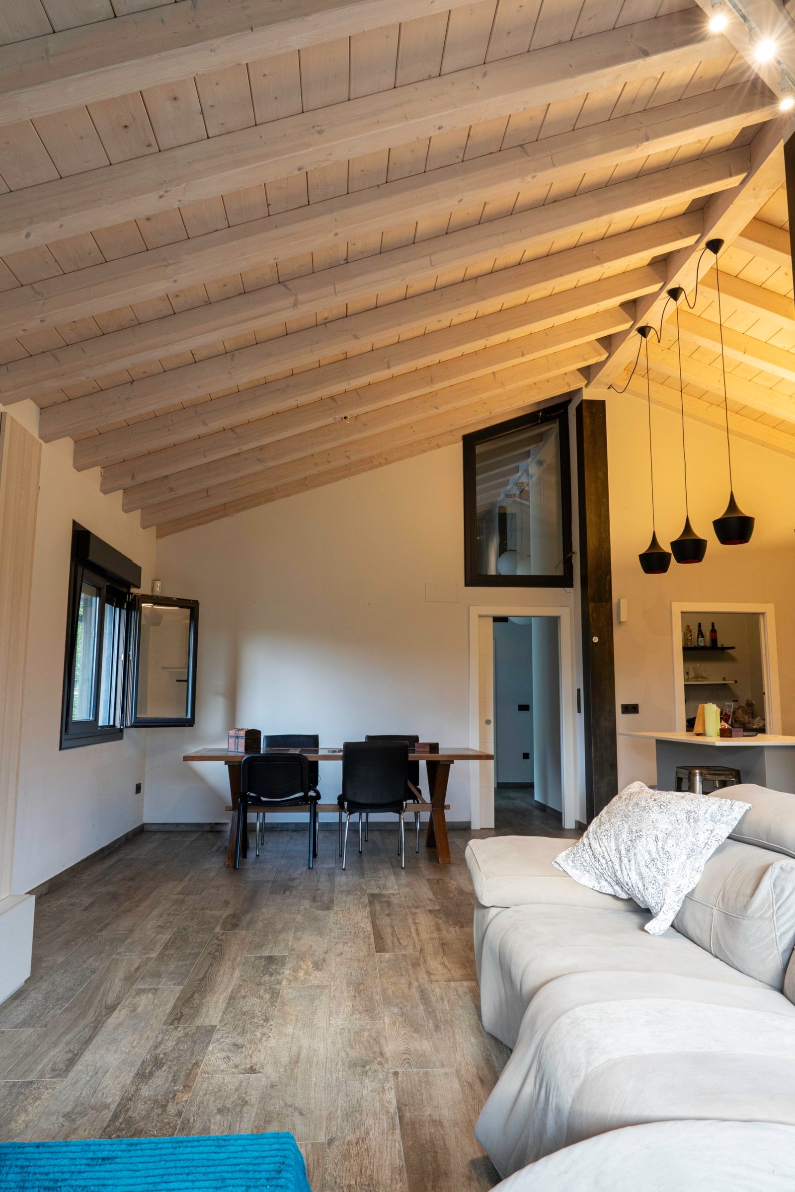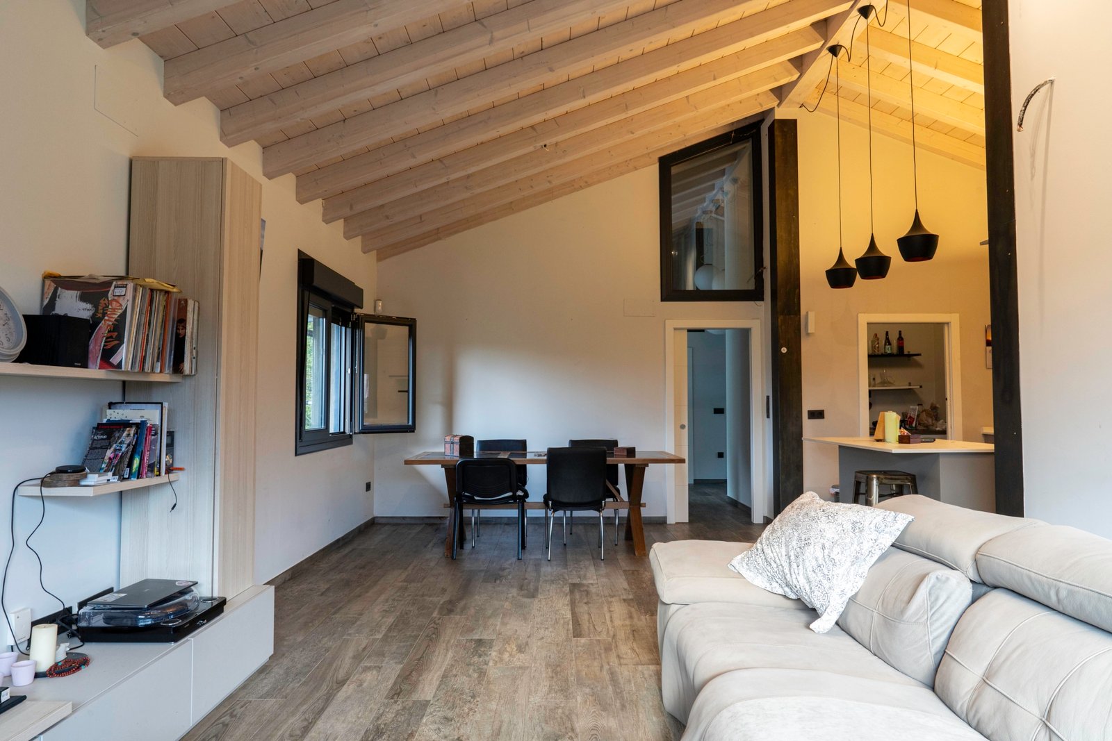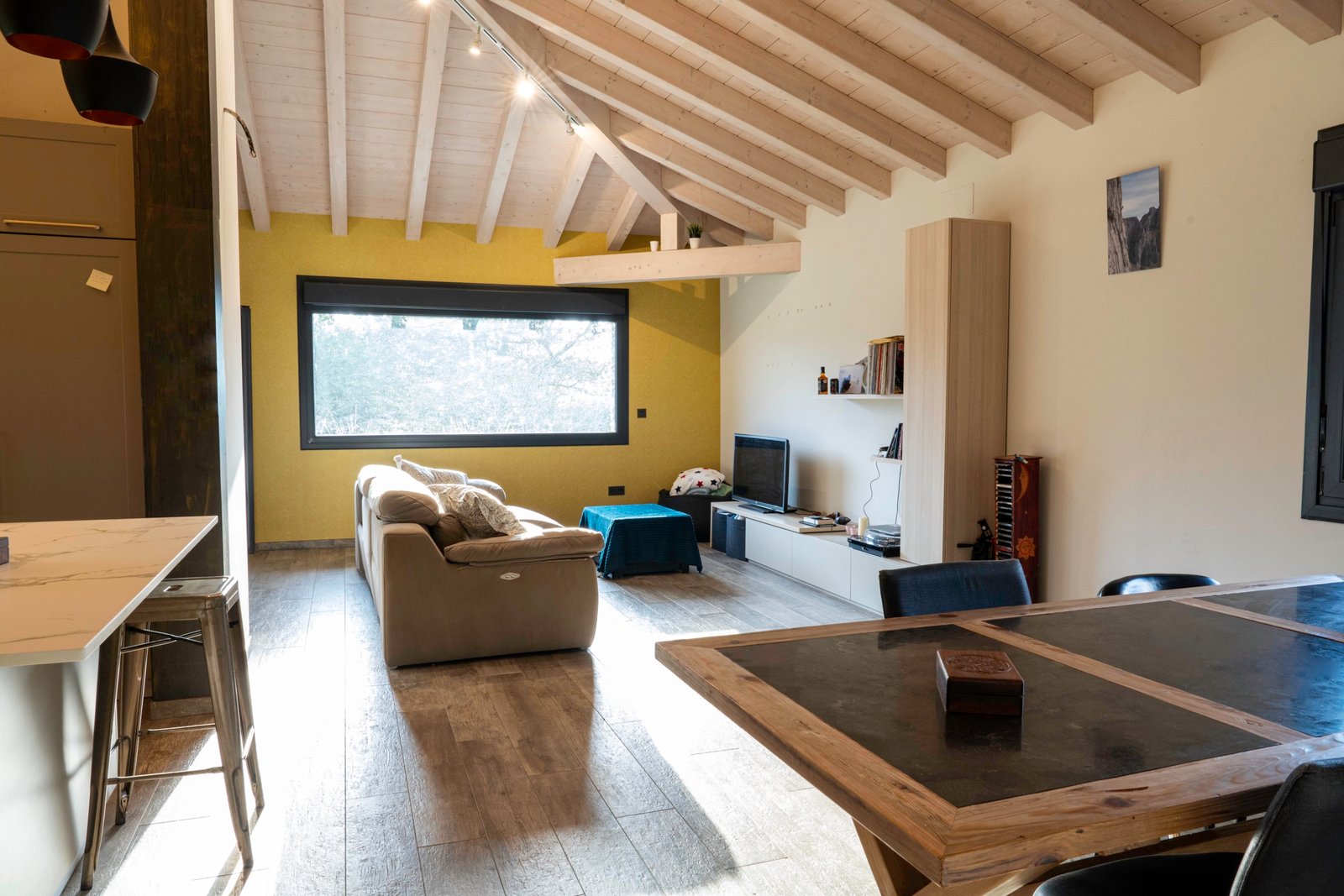 Con una planta principal de 205 metros cuadrados, la vivienda destaca por su amplitud y su diseño contemporáneo, donde la luz natural es protagonista. Dispone de cuatro habitaciones y un espectacular espacio abierto que integra la cocina con isla, el comedor y el salón, creando un ambiente cálido y social que invita a compartir momentos. Desde sus amplios ventanales se disfrutan unas vistas totalmente despejadas al paisaje verde que define el entorno de Dima.