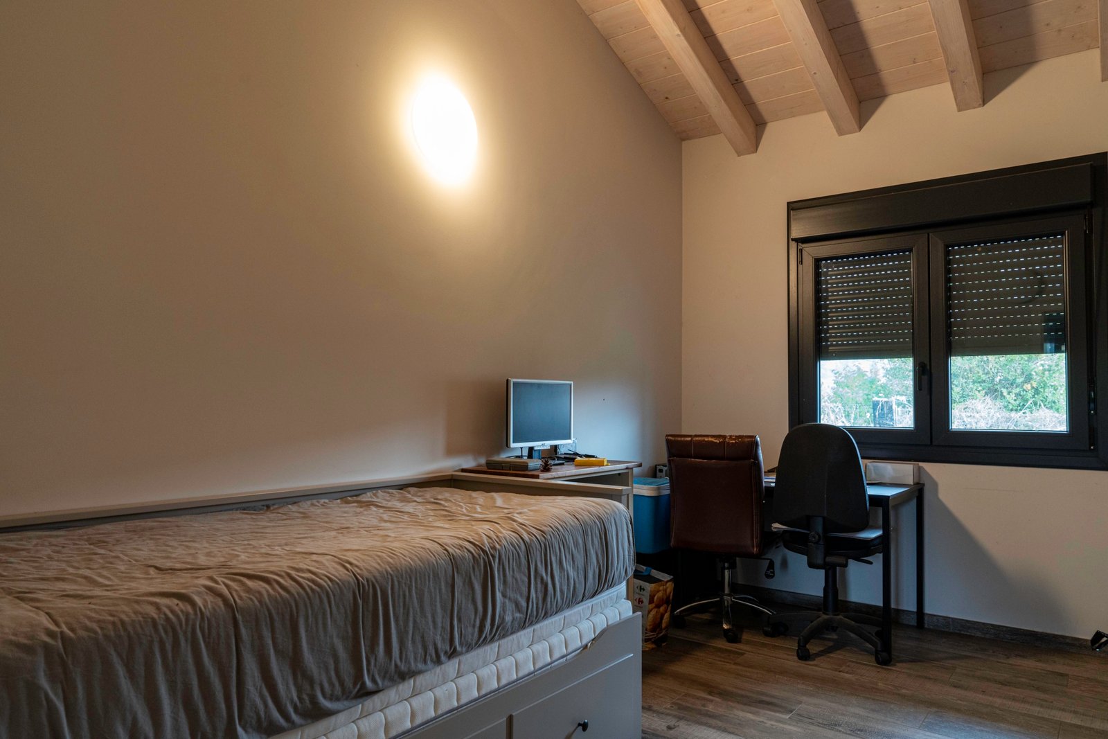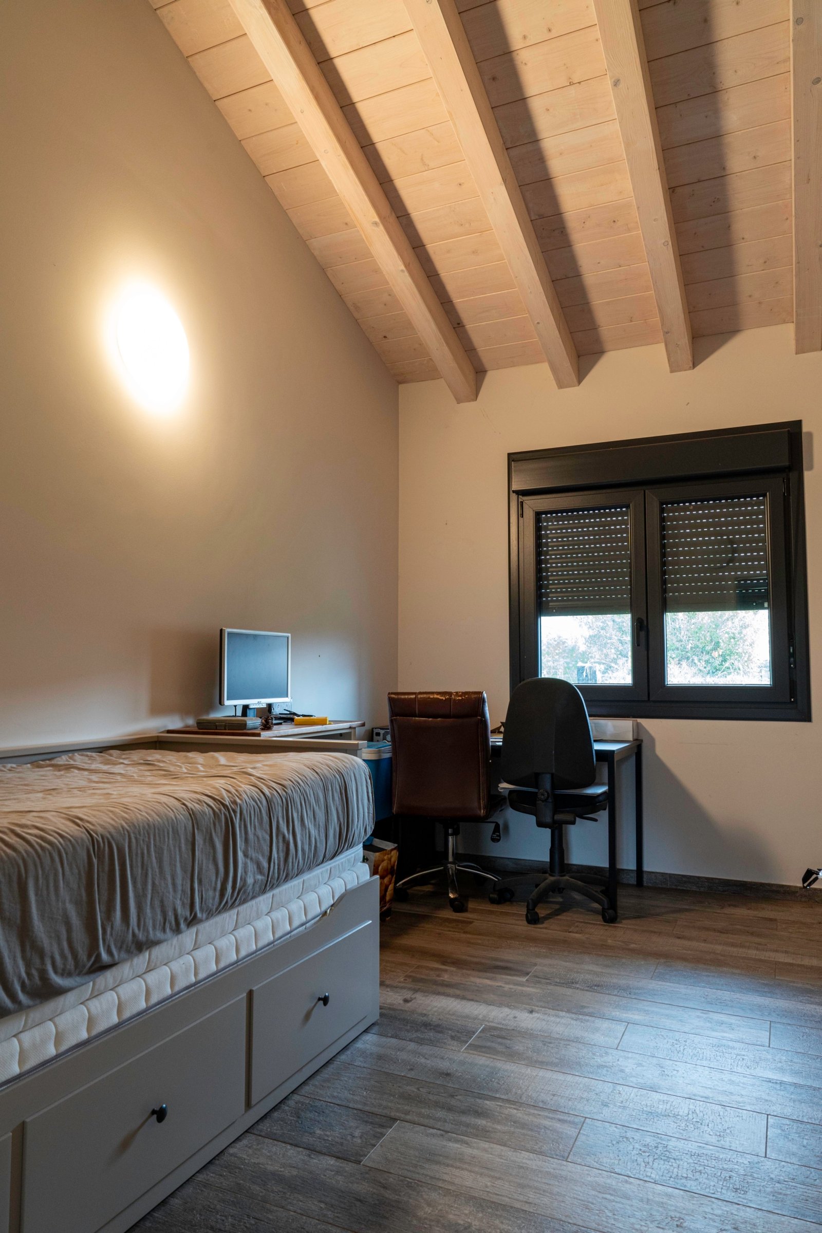 El exterior de la vivienda cuenta con un jardín que rodea la casa, ideal para disfrutar del aire libre, organizar comidas al sol o simplemente relajarse escuchando los sonidos de la naturaleza. Un espacio que amplía la experiencia del hogar y la integra con el entorno natural.